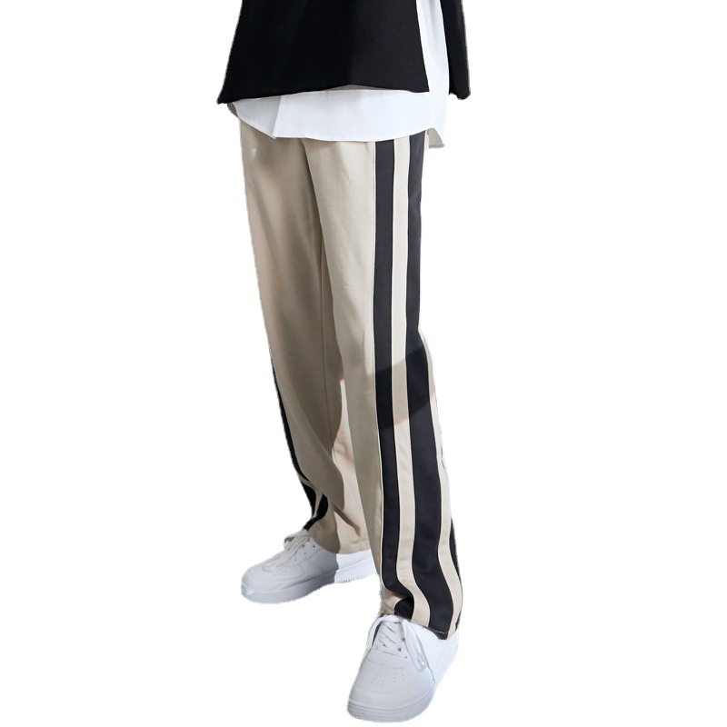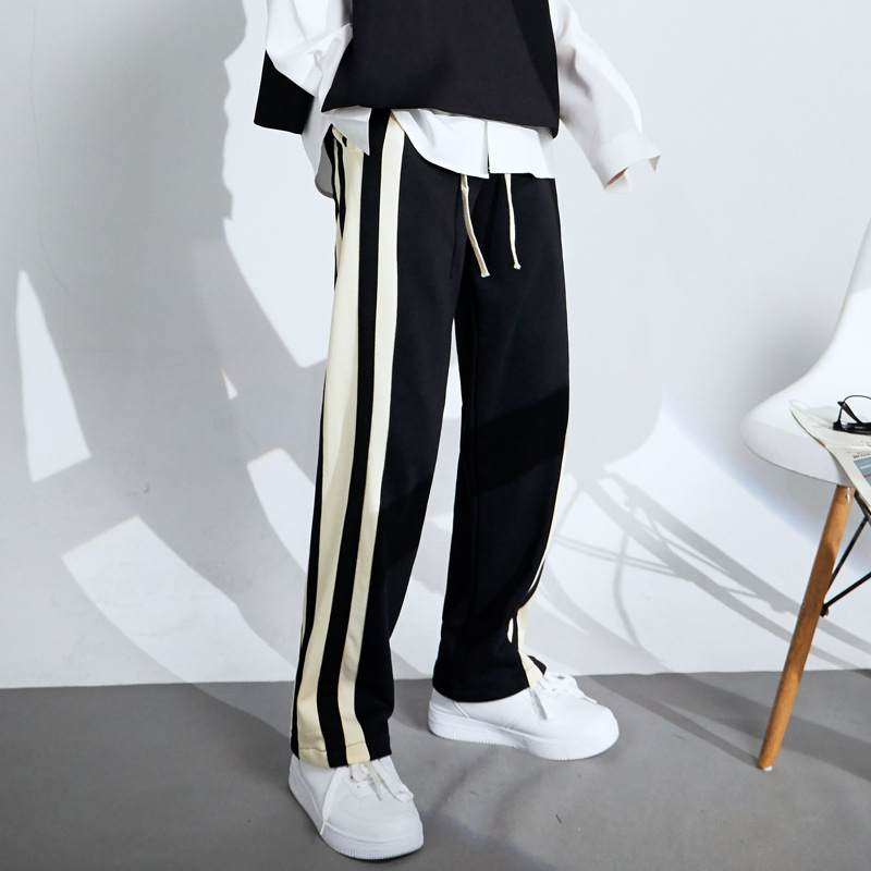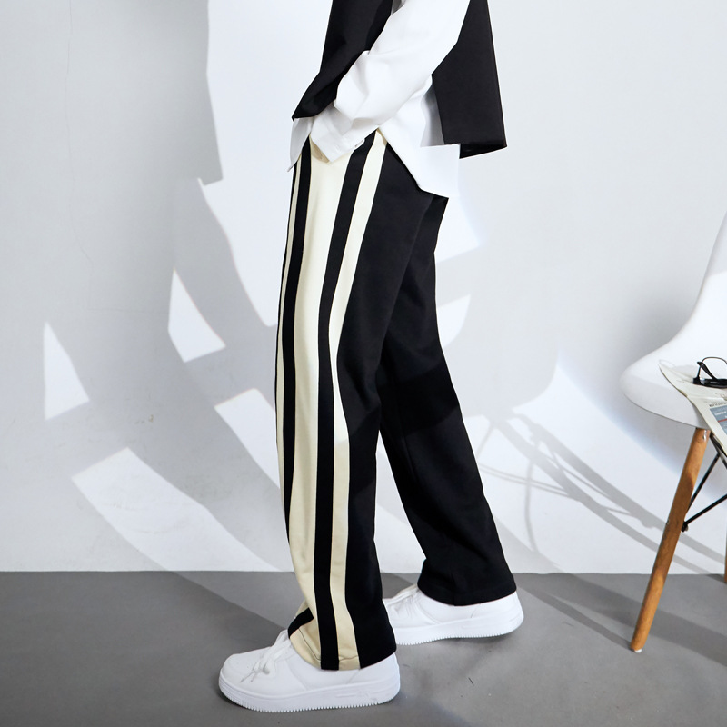 Striped Cotton Loose Fit Wide-Leg Sports Pants for Men